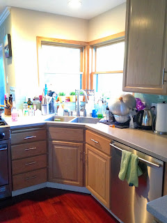 you've still got your random golf clubs and holiday decorations and overnight bags, as well as a couple of boxes of pendant lights one might have ordered months and months ago and never got around to hanging in the kitchen.