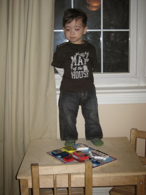 But, much to Husband's and my amazement, the lure of the secret hiding spot was strong, and no sooner had we gotten home than Ethan set to work pulling all manner of things out of the closet to find the very back space he was thinking off for his hideaway. This of course meant that the entryway of my house looks like, well, a crawl space. "Welcome to our home! Just toss your coat on top of our sleeping bags and that assortment of holiday and birthday wrapping paper!"